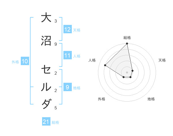 大沼 セルダさんを姓名の画数から五運を鑑定