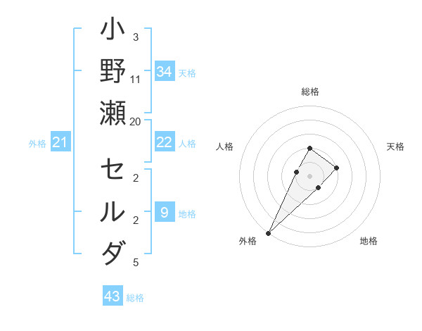 小野瀬 セルダさんを姓名の画数から五運を鑑定