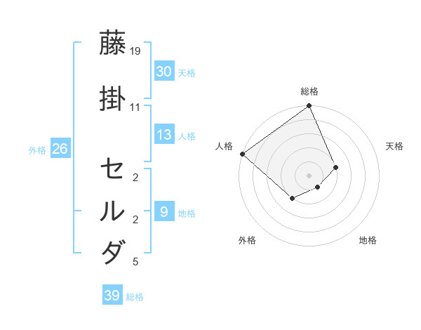 藤掛 セルダさんの総格は39画の5点!