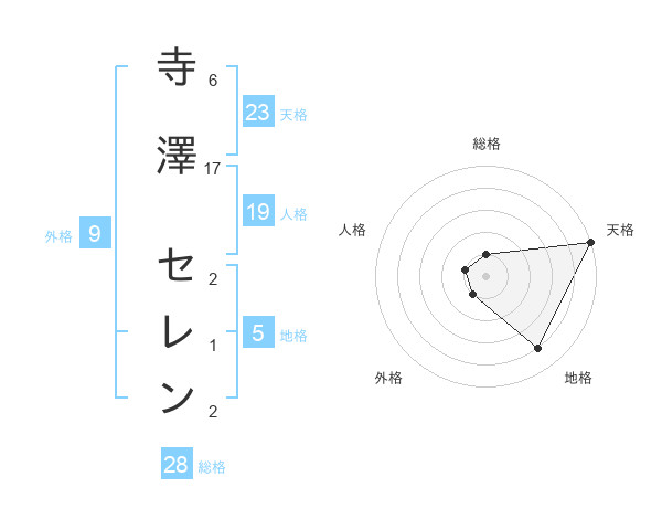 寺澤 セレンさんを姓名の画数から五運を鑑定
