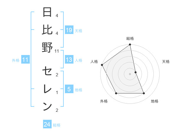 日比野 セレンさんを姓名の画数から五運を鑑定