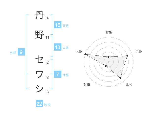 丹野 セワシさんの天格は15画の4点!
