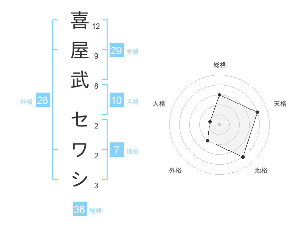 喜屋武 セワシさんを姓名の画数から五運を鑑定