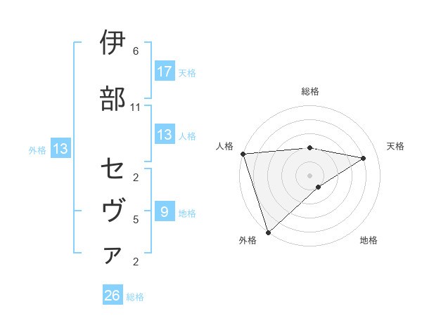 伊部 セヴァさんを姓名の画数から五運を鑑定