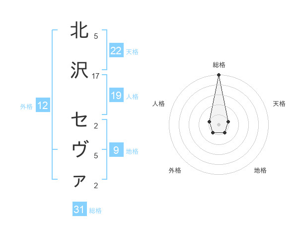 北沢 セヴァさんを姓名の画数から五運を鑑定