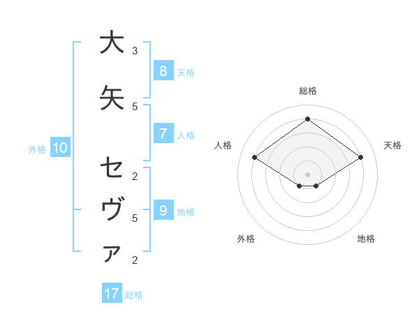 大矢 セヴァさんを姓名の画数から五運を鑑定
