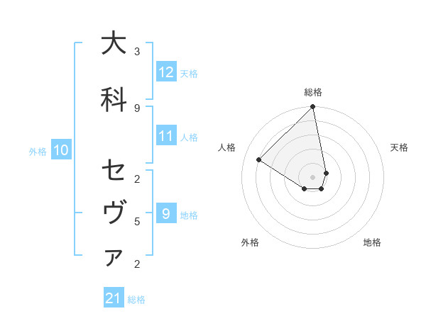 大科 セヴァさんを姓名の画数から五運を鑑定