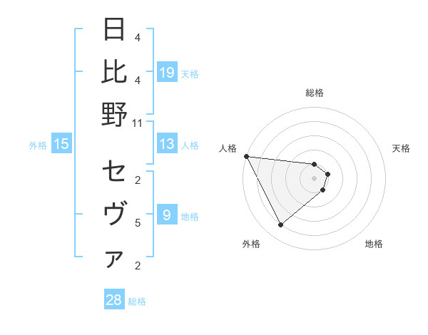 日比野 セヴァさんを姓名の画数から五運を鑑定