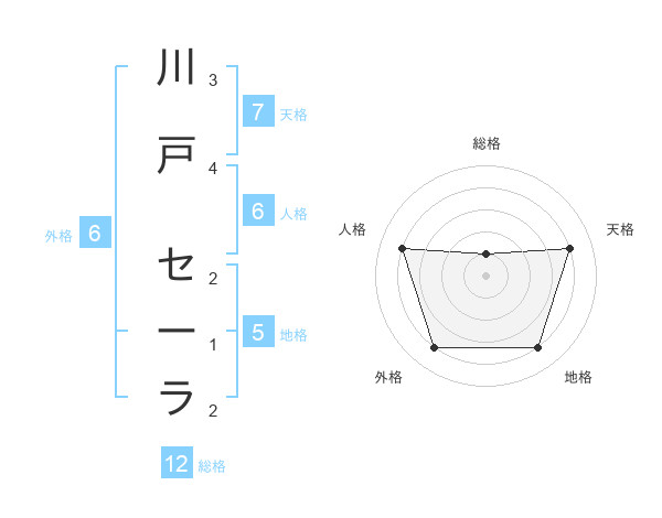 川戸 セーラさんの総格は12画の1点!