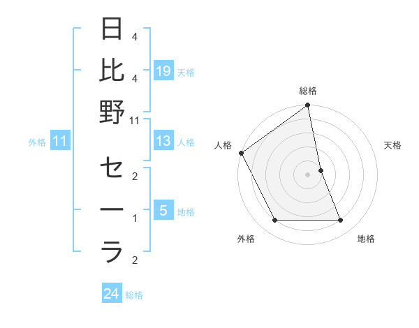 日比野 セーラさんを姓名の画数から五運を鑑定