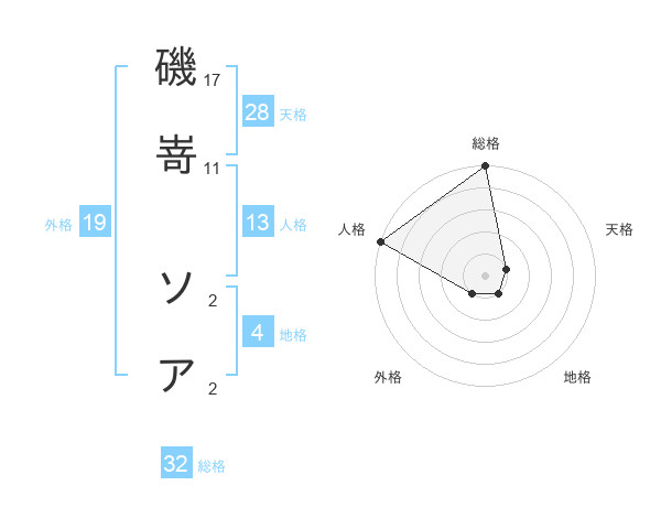 磯嵜 ソアさんの総格は32画の5点!