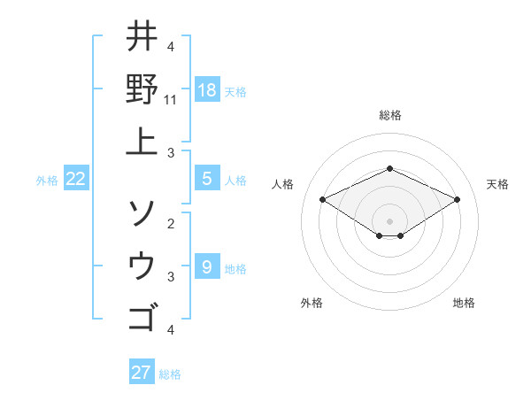 井野上 ソウゴさんの天格は18画の4点!