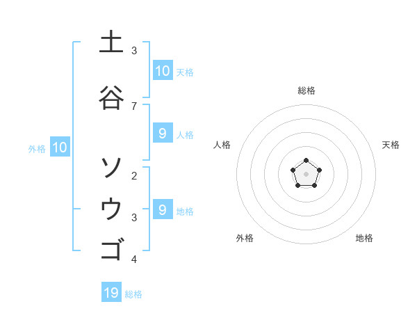 土谷 ソウゴさんを姓名の画数から五運を鑑定