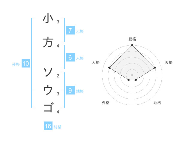 小方 ソウゴさんを姓名の画数から五運を鑑定