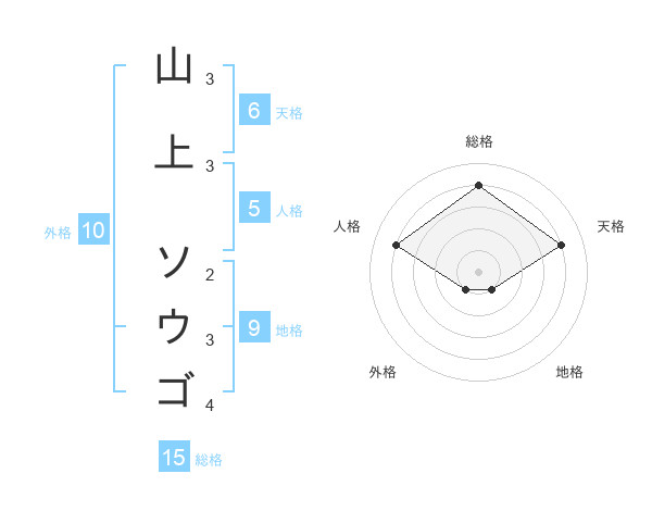 山上 ソウゴさんを姓名の画数から五運を鑑定