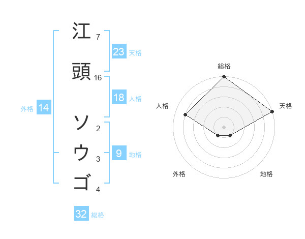 江頭 ソウゴさんを姓名の画数から五運を鑑定