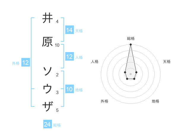 井原 ソウザさんを姓名の画数から五運を鑑定