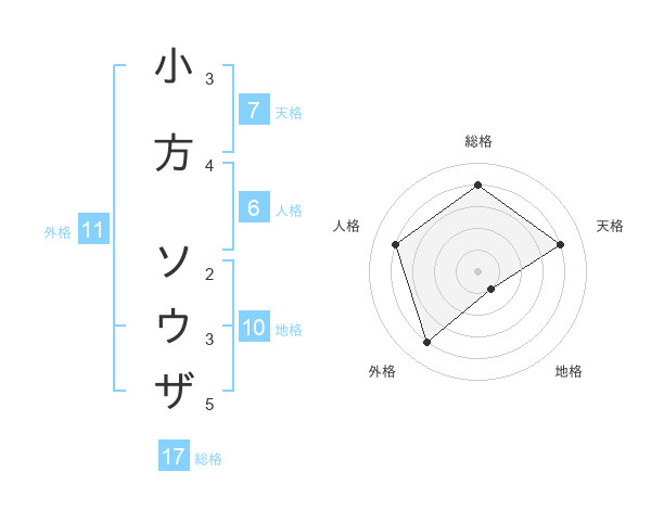 小方 ソウザさんの総格は17画の4点!