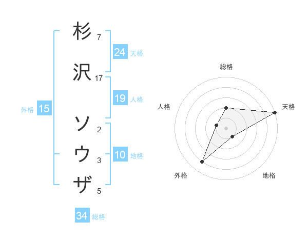 杉沢 ソウザさんを姓名の画数から五運を鑑定