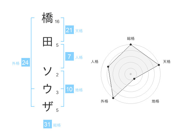 橋田 ソウザさんの総格は31画の5点!
