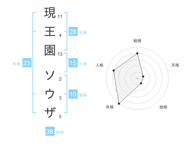 現王園 ソウザさんを姓名の画数から五運を鑑定