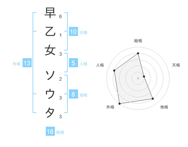 早乙女 ソウタさんを姓名の画数から五運を鑑定