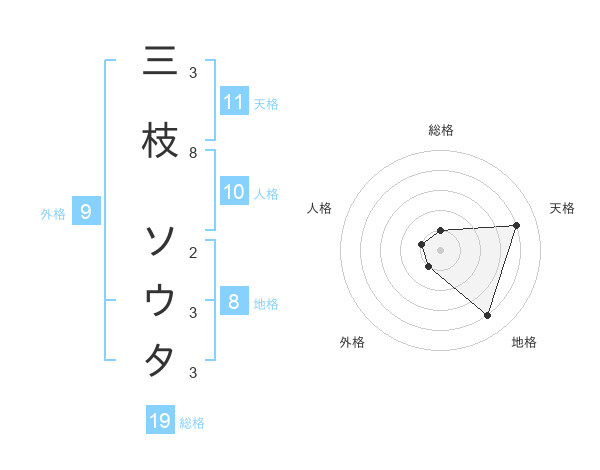 三枝 ソウタさんの天格は11画の4点!