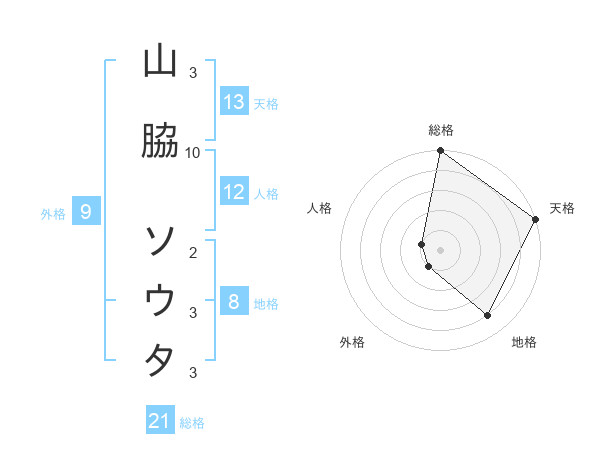 山脇 ソウタさんを姓名の画数から五運を鑑定