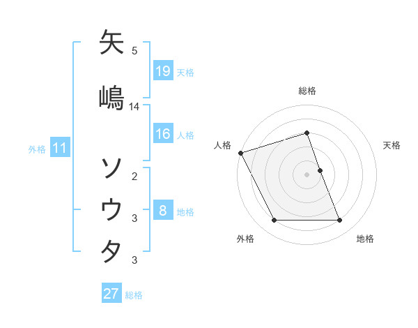 矢嶋 ソウタさんを姓名の画数から五運を鑑定
