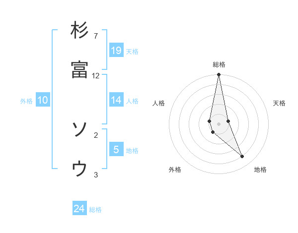 杉富 ソウさんを姓名の画数から五運を鑑定