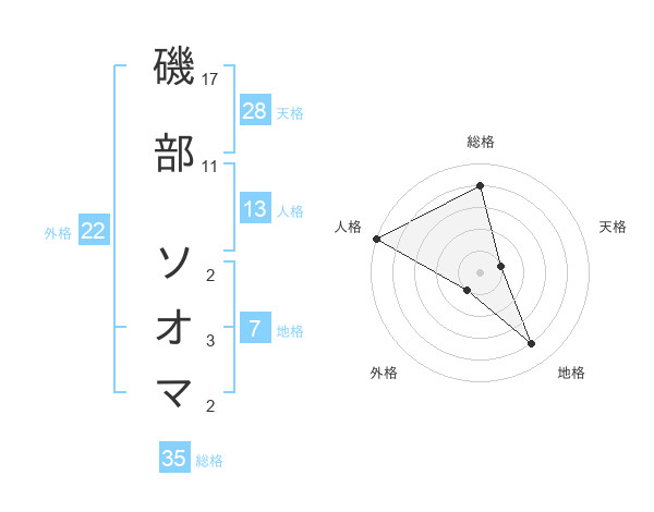 磯部 ソオマさんの総格は35画の4点!