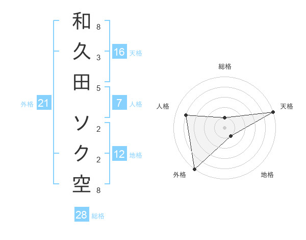 和久田 ソク空さんの外格は21画の5点!