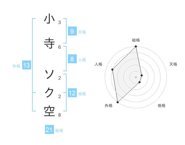 小寺 ソク空さんを姓名の画数から五運を鑑定