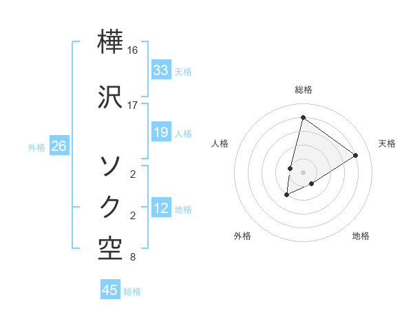 樺沢 ソク空さんの総格は45画の4点!