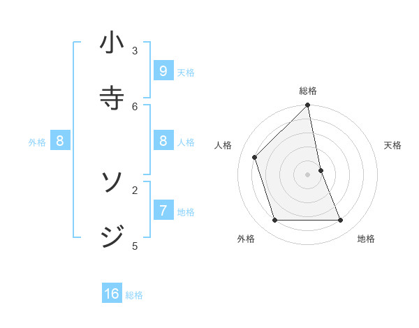 小寺 ソジさんの総格は16画の5点!