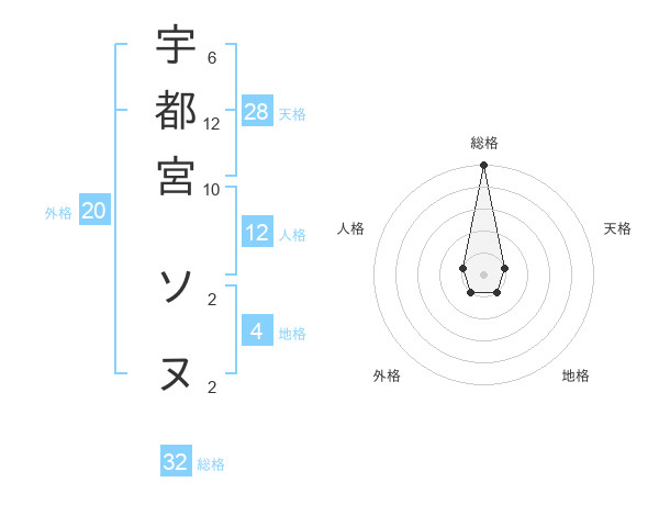 宇都宮 ソヌさんを姓名の画数から五運を鑑定