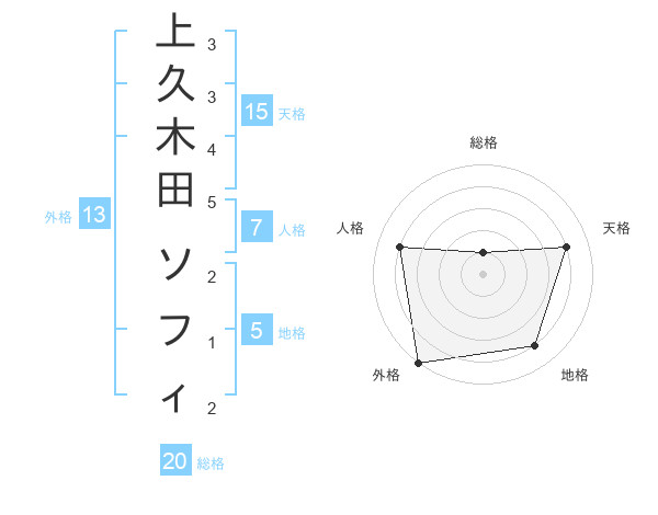 上久木田 ソフィさんを姓名の画数から五運を鑑定