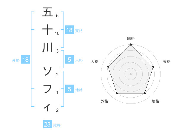 五十川 ソフィさんを姓名の画数から五運を鑑定