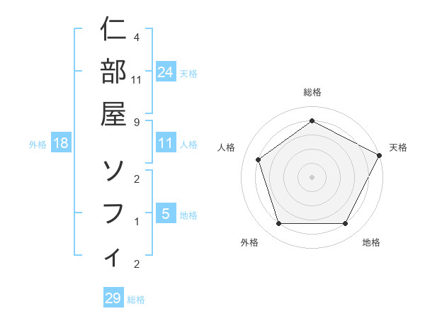 仁部屋 ソフィさんを姓名の画数から五運を鑑定