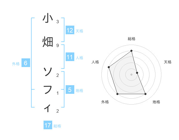 小畑 ソフィさんを姓名の画数から五運を鑑定