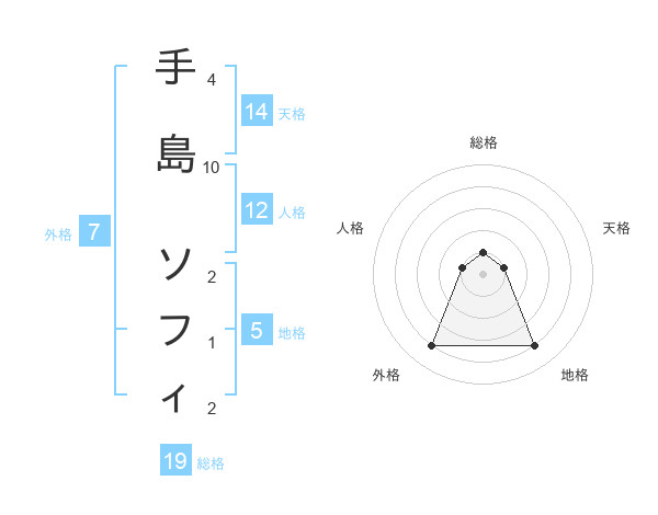 手島 ソフィさんの外格は7画の4点!
