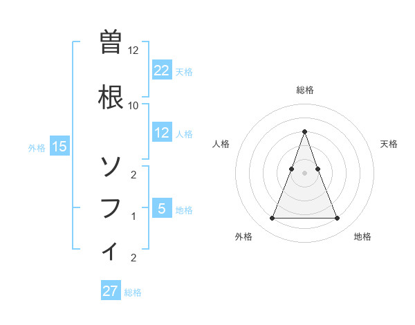 曽根 ソフィさんを姓名の画数から五運を鑑定