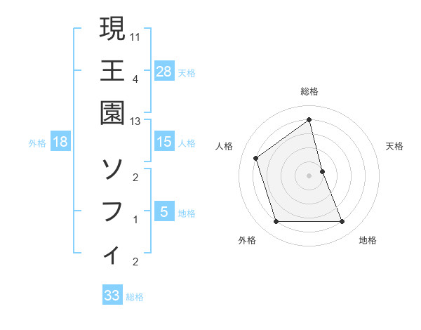 現王園 ソフィさんを姓名の画数から五運を鑑定