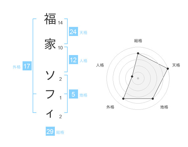 福家 ソフィさんの天格は24画の5点!