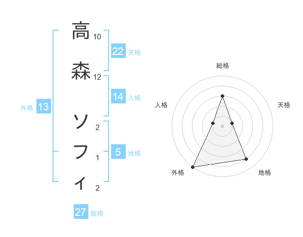 高森 ソフィさんを姓名の画数から五運を鑑定