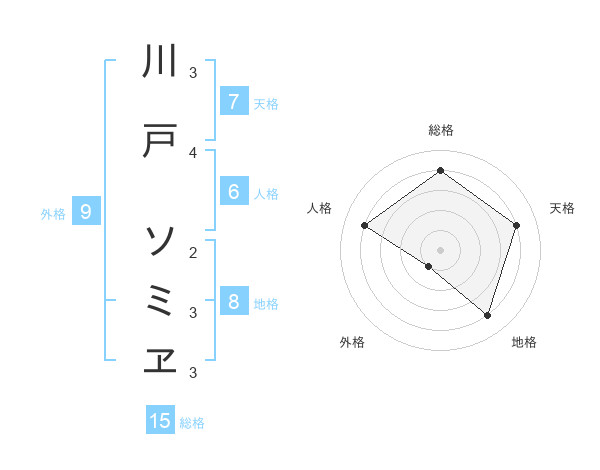 川戸 ソミヱさんを姓名の画数から五運を鑑定