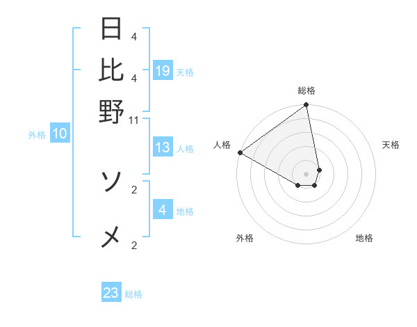 日比野 ソメさんを姓名の画数から五運を鑑定
