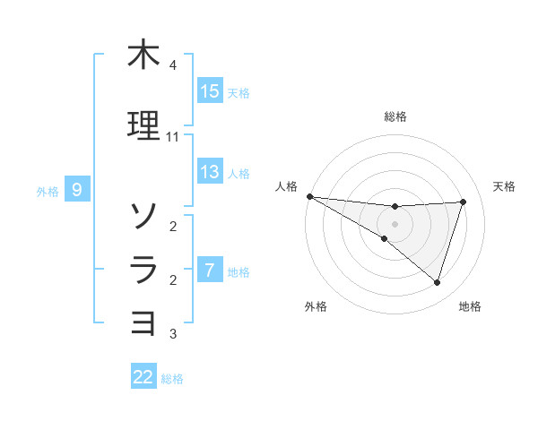 木理 ソラヨさんを姓名の画数から五運を鑑定