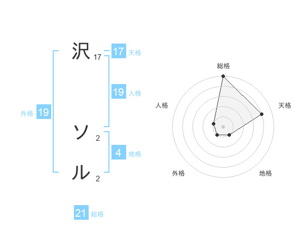 沢 ソルさんの天格は17画の4点!