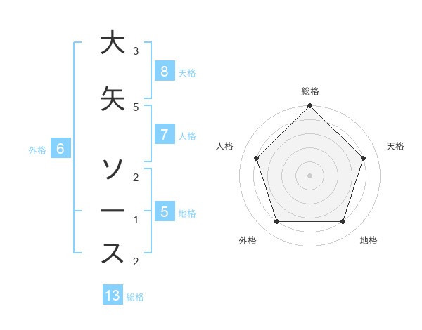 大矢 ソースさんを姓名の画数から五運を鑑定